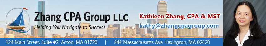 Zhang CPA Group LLC is a well-established and reputable CPA firm located in Lexington and Acton, Massachusetts. Our firm provides a full range of domestic & international tax planning and tax preparation for business entities and high-net-worth individuals, real estate tax, accounting, advanced tax and accounting researches, QuickBooks consulting, financial planning, incorporation, and business advisory services.